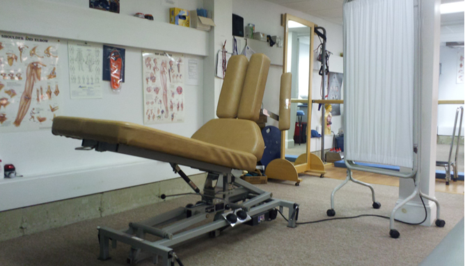 Our clinic is equipped with machines such as ultrasound, electrical stimulation, iontophoresis, traction units for spine, and rehab trainers.